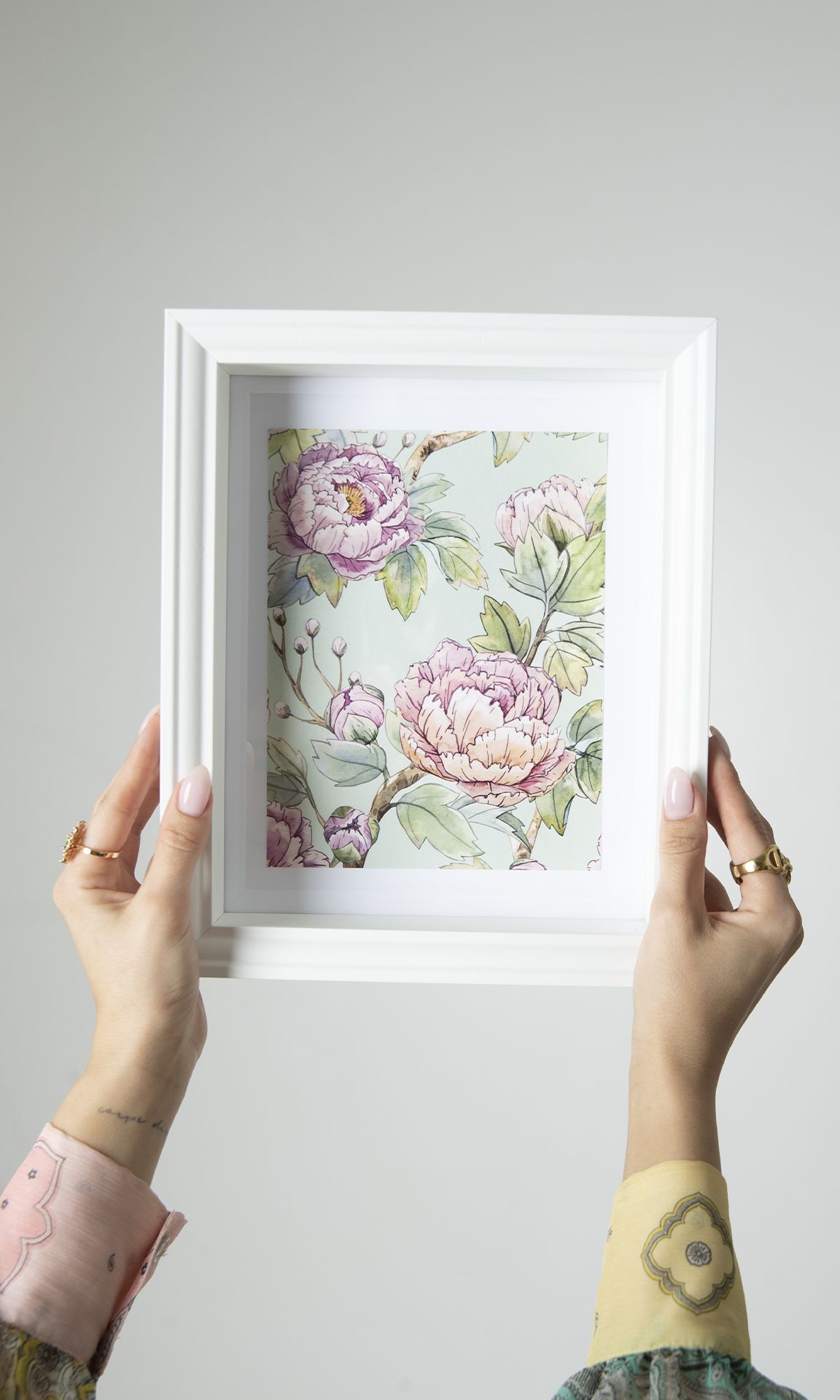 Peonies and pistachio define our Miranda print. Soft hues of greens and greys, pinks and the palest peaches forming a mesmerizing print. Peonies, arguably the most romantic flower, symbolic of love, honor, happiness, wealth, and beauty were the obvious choice for the completion of our floral trio.